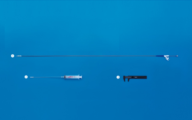 - A marker on the balloon section facilitates positioning.